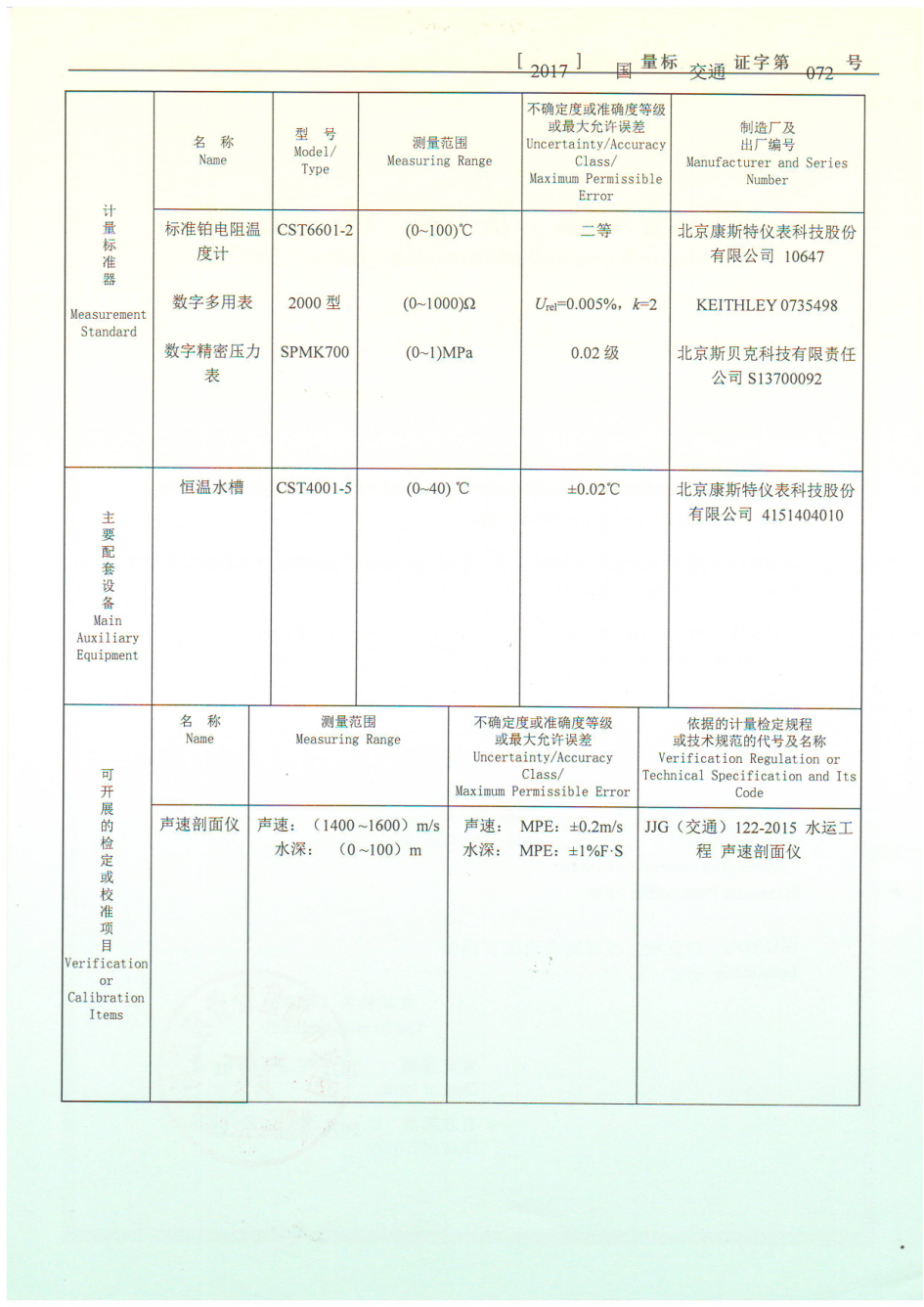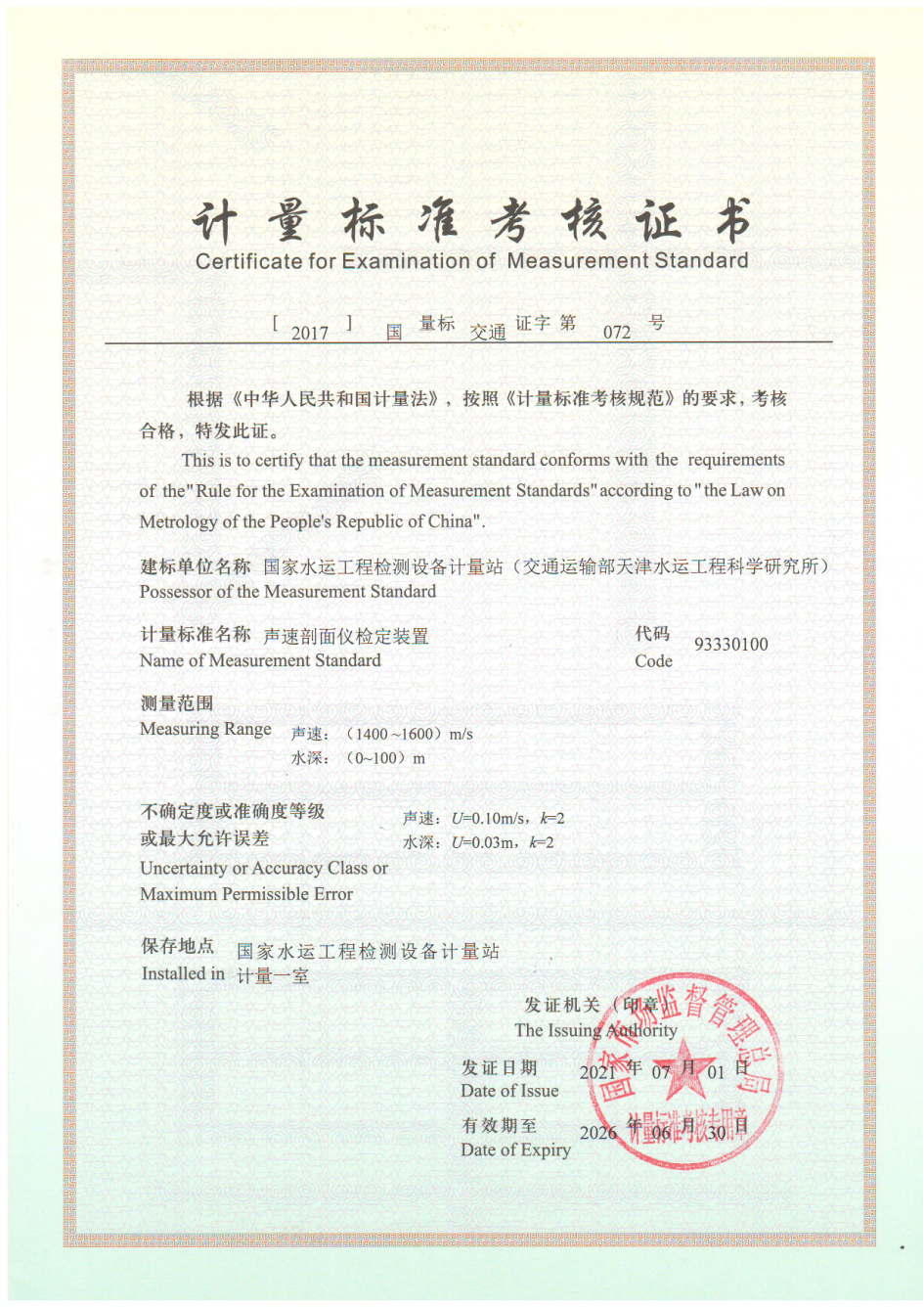 计量器具名称:多波束测深系统(含多波束测深仪、声速仪、验潮仪)