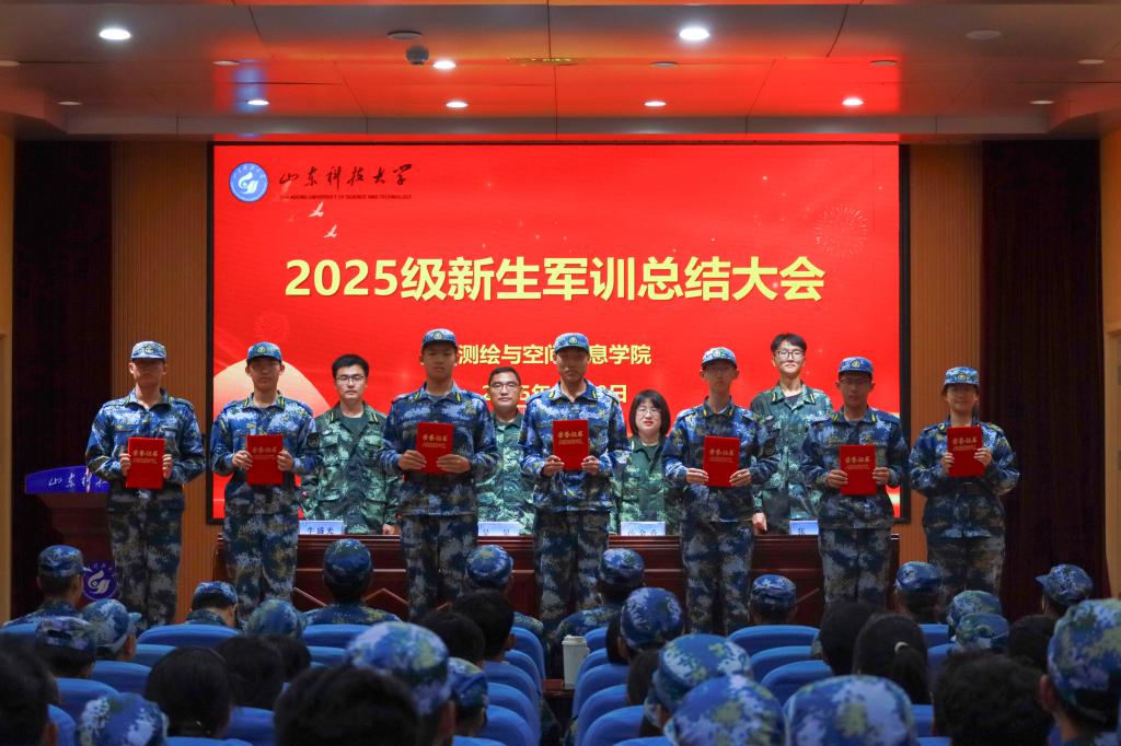 孙金香宣读2025级新生军训表彰决定,3个班级荣获“优秀军训班级”荣誉称号,15名同学获得“优秀学员”荣誉称号。地理信息科学2025级1班王彦湫作为优秀学员代表发言。与会领导、老师为获奖代表颁发证书。