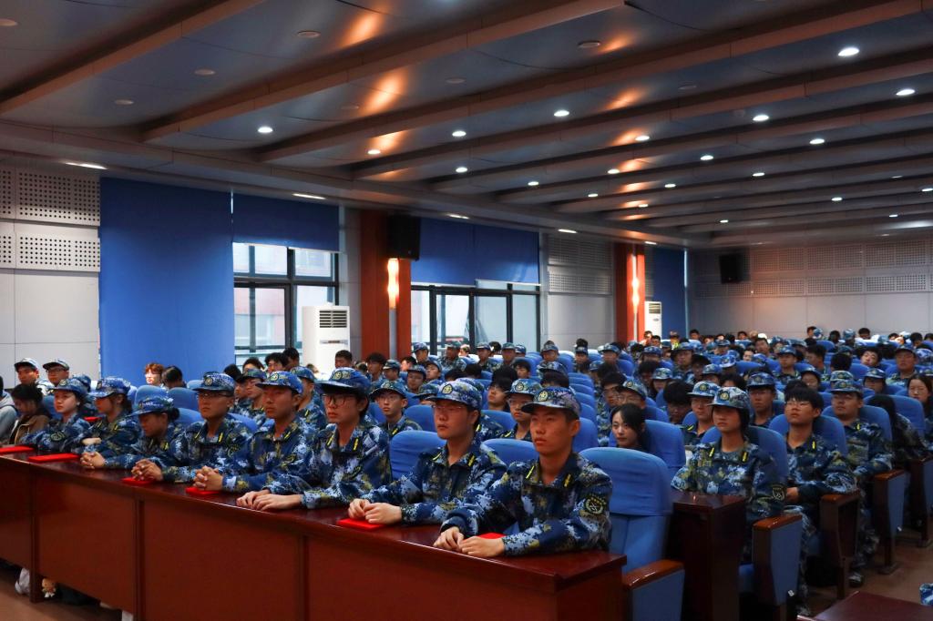 吴昊向全体2025级参训新生表示祝贺,向付出辛勤努力的教官与老师们致以敬意。同时对全体本科新生提出三点要求:一是延续军训中养成的严谨作风与吃苦品质,严守校规校纪;二是强化自我管理,合理规划时间,全面提升综合素质;三是树立远大理想,将个人发展与国家需求紧密结合。