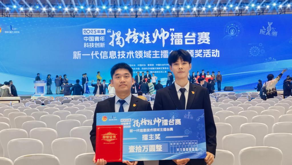参赛团队在2025年度中国青年科技创新“揭榜挂帅”新一代信息技术领域擂台赛中,斩获特等奖1项、一等奖1项,其中1个项目以小组第一名的优异成绩荣获擂主奖。