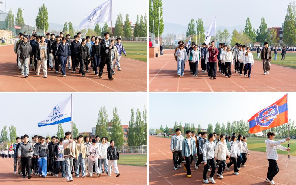 伴随着激昂澎湃的《运动员进行曲》,国旗护卫队昂首挺胸、步伐整齐,率先步入会场,各班级方队紧随其后,依次迈着铿锵有力的步伐走过主席台。同学们精神抖擞、意气风发,班级口号整齐响亮,尽显测绘学子蓬勃朝气。