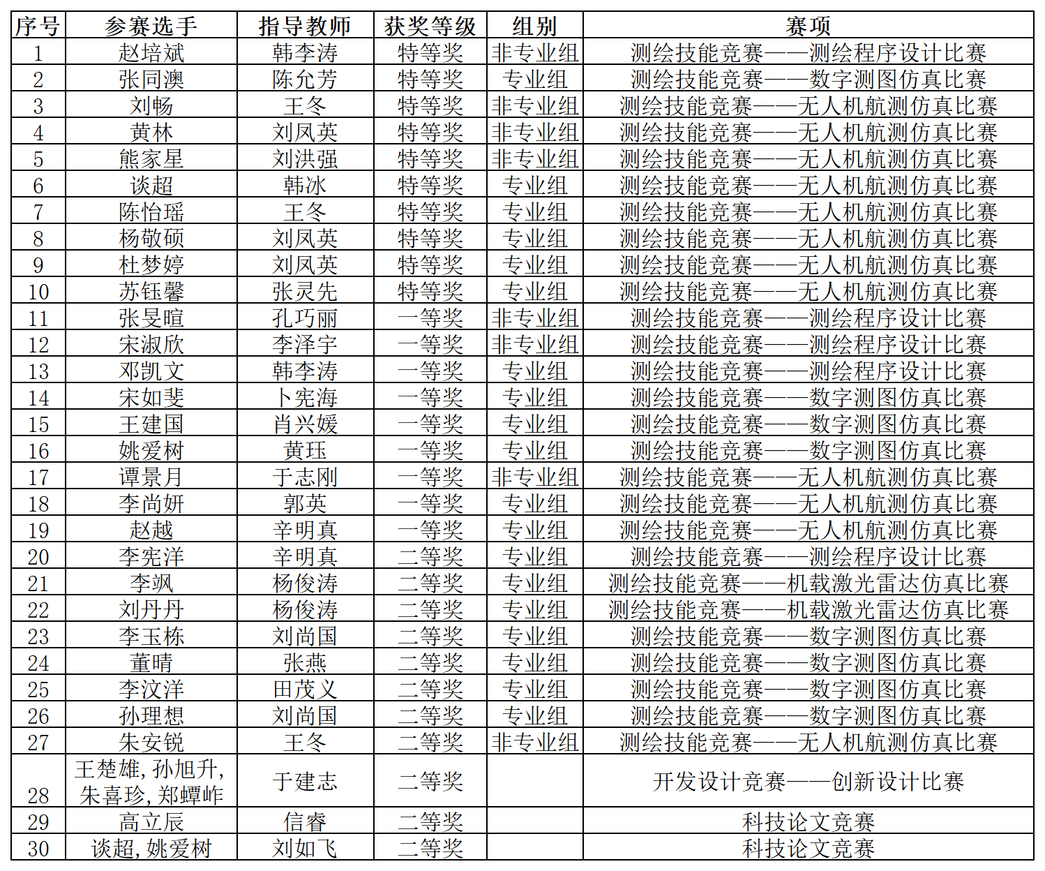 将深化学生创新实践能力培养,落实“以赛促教、以赛促学、以赛促创”的理念,不断激发测绘学子的创新潜能与创业热情,为行业发展培育更多新时代测绘人才。(通讯员:韩冰)