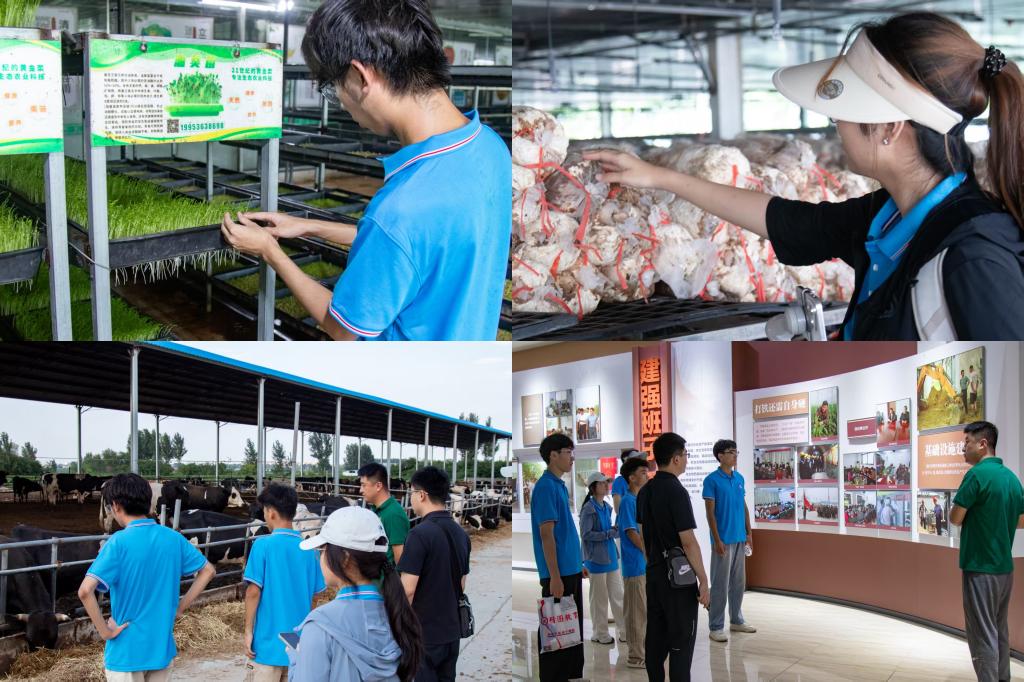 开幕仪式上,洼里村新型农民培训中心李主任详细介绍了天霞集团的发展历程与特色技术,重点解读了“党支部+公司+联合社+农户”的创新运营模式,以及绿色有机作物种植、循环经济体系构建等核心发展亮点。当日下午,团队实地走访了园区全产业链生产基地:从有机蔬菜大棚,到智慧奶牛养殖场;从蔬菜深加工,到酵素生产、有机肥料制作,再到农业生产与研学旅行融合的第三创新产业。队员们步步深入,真切感受到科技赋能下农业生产的现代化图景,深刻体会到乡村振兴战略在基层落地生根的蓬勃活力。
